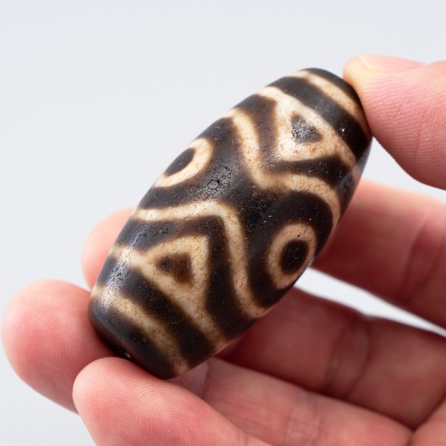 Tibetan Natural Old Agate 3 Eye Dzi Bead.
