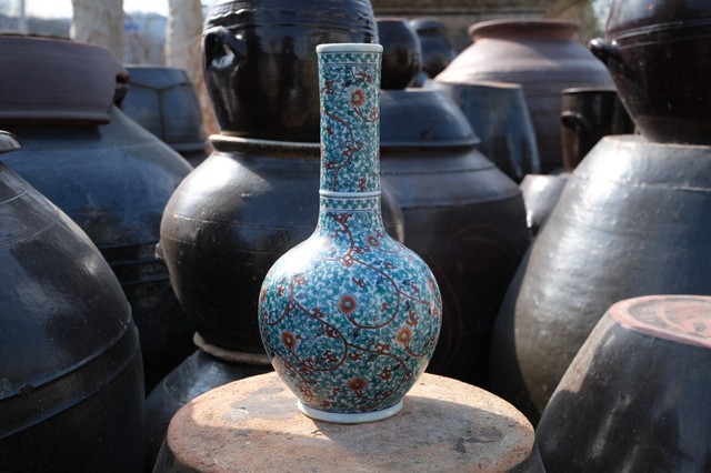 A0111. Doucai Vase with Interlocking Floral Pattern & Long Neck