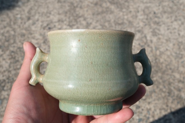 A0112. Longquan Celadon Censer with Double Handles
