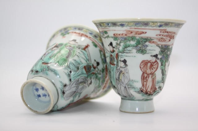 chinese porcelain famille verte bell-shaped a pair of cup with kangxi mk