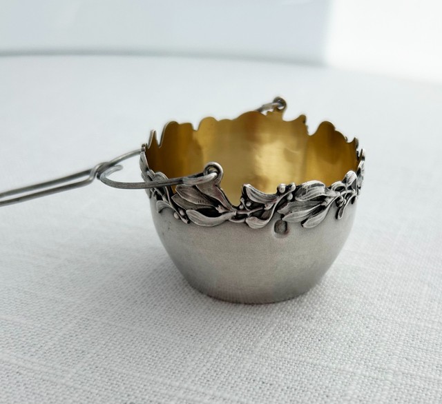 FREE SHIPAntique French Sterling Silver Vermeil Tea Strainer Art Nouveau Gilt Bowl