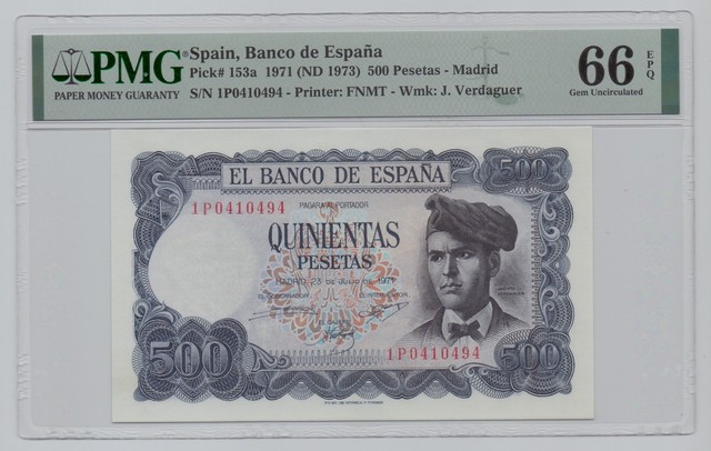 Spain, 1971(ND 1973), 500 Pesetas – PMG 66 (P-153a) Shipping fee combined