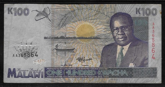 Malawi 1995 100 Kwacha P 34 AA Dirty Fine