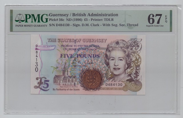 Guernsey, ND(1996), 5 Pounds – PMG 67 (P-56c) See instructions