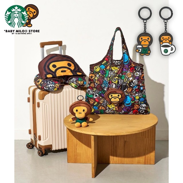 FREE SHIPStarbucks Korea 2026 BAPE BABY MILO Collab Neck Pillow Foldable Bag Keychain
