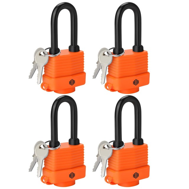 FREE SHIPHOX 4-Pack Weather Resistant Padlocks – 40mm Laminated Steel, 4 Pack, Orange