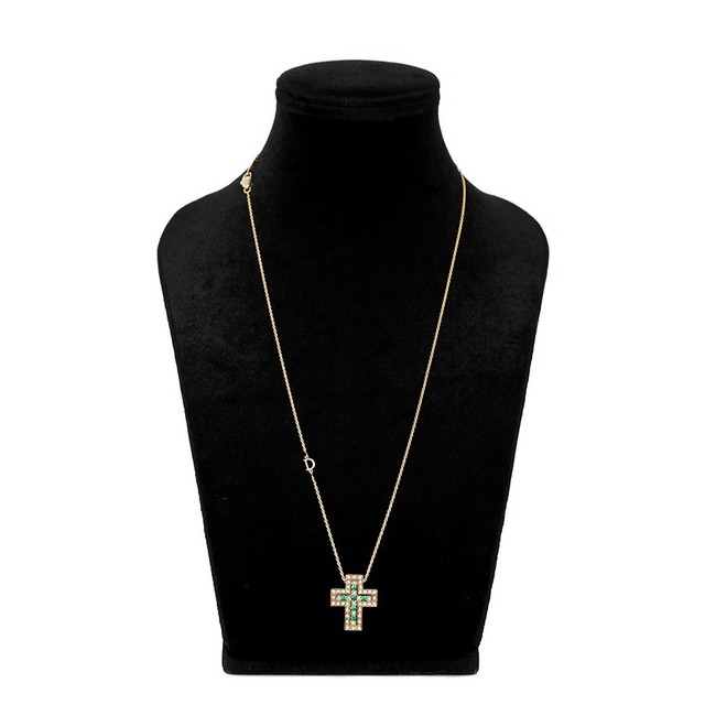 FREE SHIPAuthentic Damiani Belle Epoque Emerald Cross Necklace Yellow Gold Medium 2008919