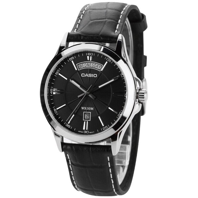 CASIO MTP-V006L-1BUDF Analog Black Leather Strap Men Watch Original New