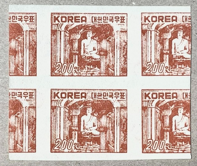 South Korea, Sc# 83, Imperf. Block, "Seokgulam", Double-side Error Print (1951)