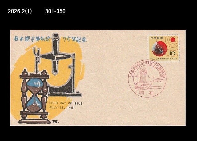 History,Map,Science,Japanese Standard Time,Clock,Math,Japan 1961 FDC,sandglass