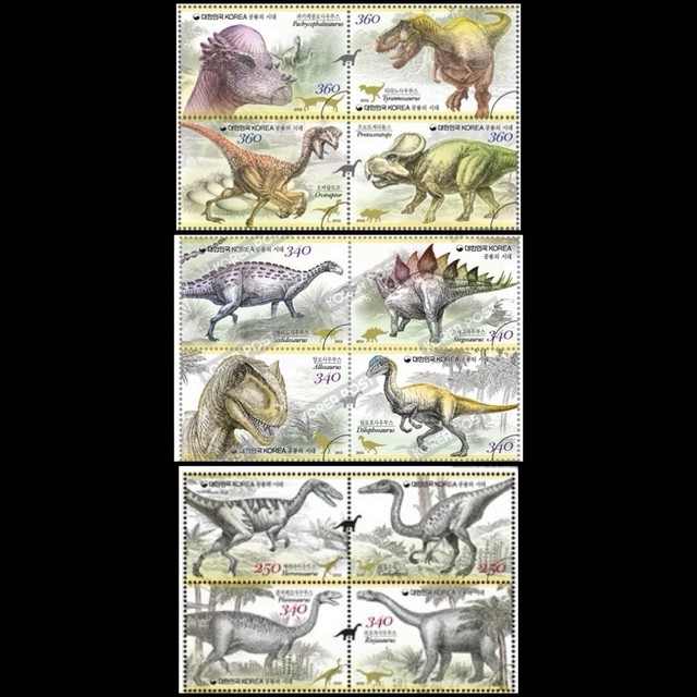 2010 2011 2012 Full set of Dinosaurs Series, South Korea MNH 3 block