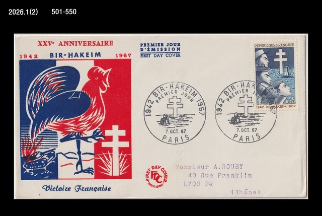War,Battle of Bir-Hakeim,History,Bird,Chicken,Soldier,Tank,France 1967 FDC,Cover