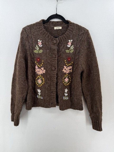 IN LOOM Women’s Embroidered Super Soft Knit Boho Midi Cardigan M Floral Design
