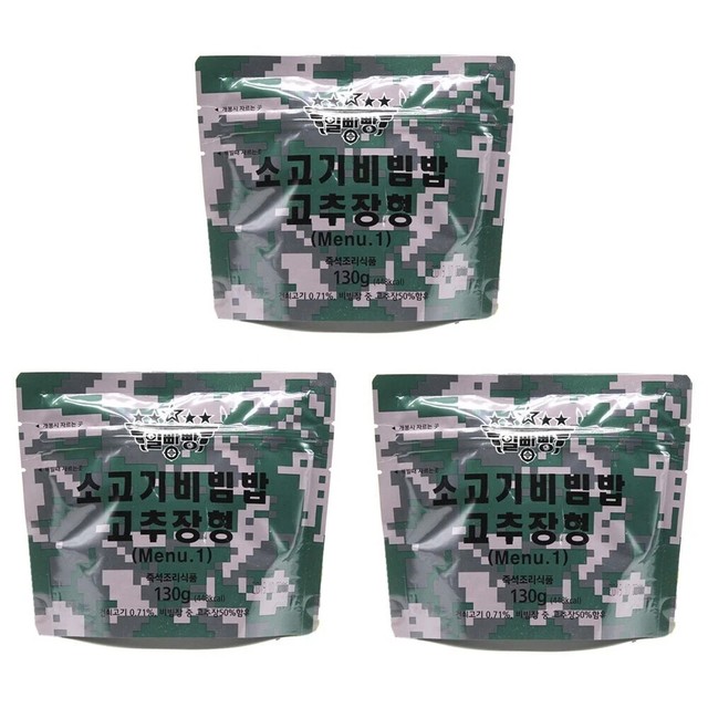 FREE SHIP[3 Pack] Korean Army MRE Combat Ration - Beef Bibimbap with Gochujang Sauce 130g