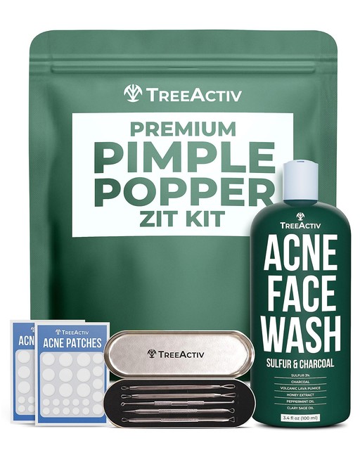 FREE SHIPTreeActiv Pimple Popper Tool Kit with Face Wash 1 Count (Pack of 1), Black