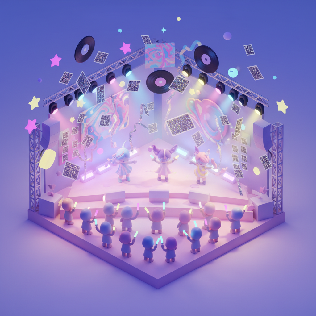 Para los ídolos virtuales, el merch suele empezar de forma digital: skins exclusivas, filtros de AR y fotobooks digitales. Sin embargo, esto siempre vuelve a la demanda física. Los fans desean una prueba tangible de su apoyo, lo que lleva a lanzamientos físicos de álbumes con mini CD o tarjetas QR.