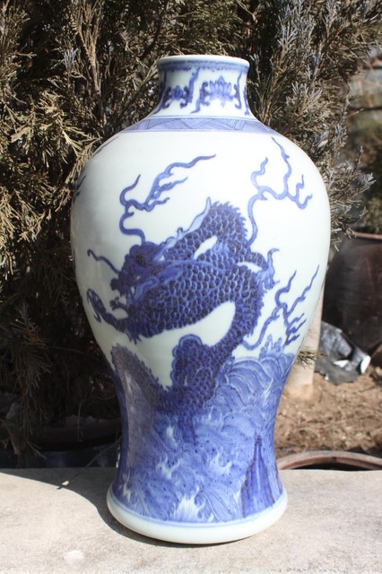 chinese porcelain blue and white dragon vase