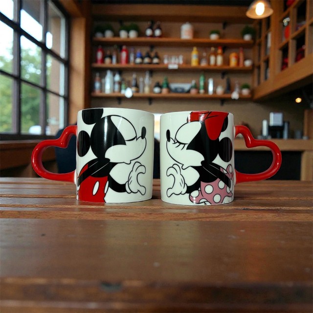 Disney minnie mickey mouse coffee mug heart handle red set _ 330ml