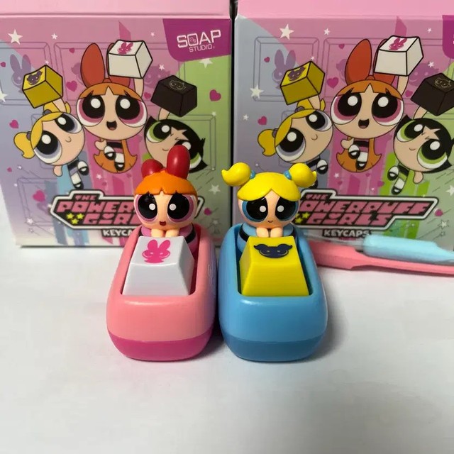 Powerpuff Girls Keycap & Keyring - Sitting Blossom & Bubble
