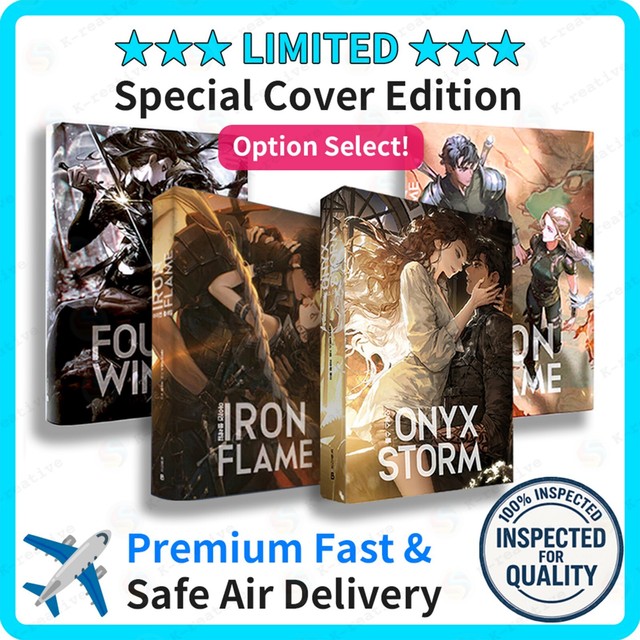 FREE SHIPFourth Wing, Onyx Storm, Iron Flame Set, Korean, Art Dust Jacket & Board - FedEx