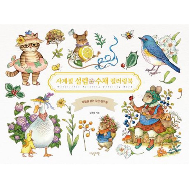 FREE SHIPFour Seasons Watercolor Coloring Book (Korean) | Cute Animals & Botanicals