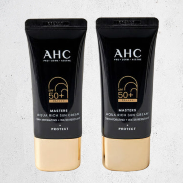 2 x AHC Masters Aqua Rich Sun Cream SPF50+ PA++++ 30ml from Korea