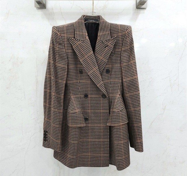 FREE SHIPBalenciaga Houndstooth Blazer Wool Jacket 120081296