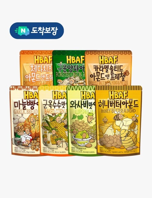 HBAF Korean Snack 15 kinds of Almond Honey butter, Wasabi, Caramel, Laver (120g)