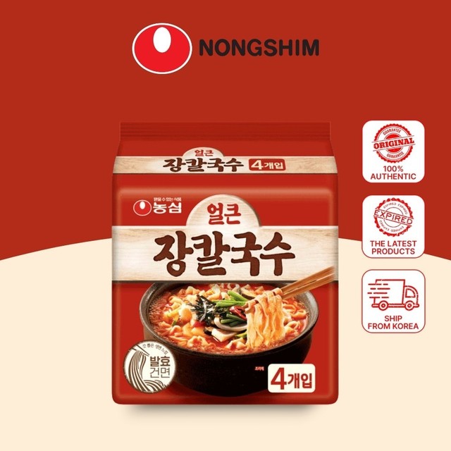 FREE SHIPNongshim Spicy Jangkalguksu 103g Bag Ramen - Pack of 4 | Authentic Korean Noodle