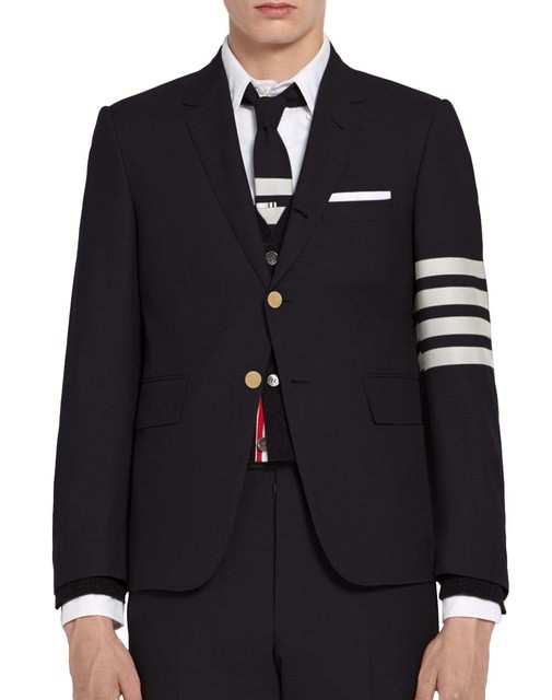 FREE SHIPThom Browne Three-Striped Arm Band Wool Blazer Jacket Navy 118613616
