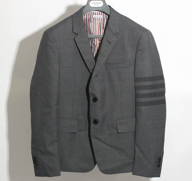 FREE SHIPThom Browne Diagonal Armband Wool Blazer Jacket Suit Grey 152837843