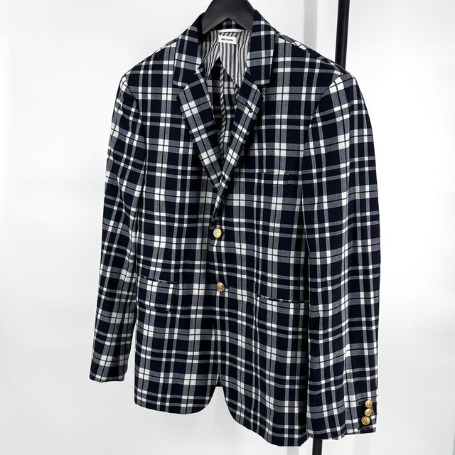 FREE SHIPThom Browne Classic Check Pattern Wool Blazer Jacket 152837943