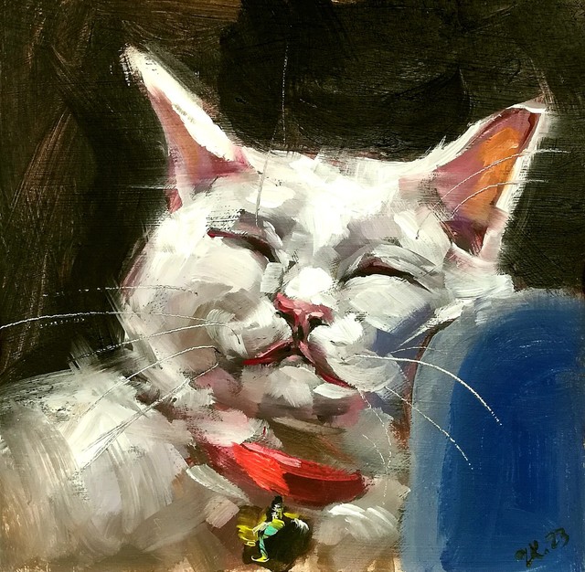 Original Oil Painting Playing Cat Animal Pet Art Signed Artwork to Order
